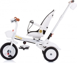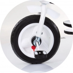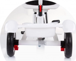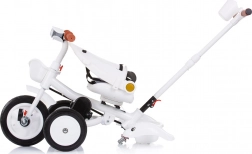 De praktische uitrusting omvat een draaibare zitting in 2 richtingen, 2 kantelposities, een inklapbare voetensteun, een inklapbare kap met zonneklep en een mandje voor en achter voor klein spullen. Grote rubberen wielen met spatborden bieden stabiliteit en een stille rit, terwijl het stuur met muziek en licht kleine rijders plezier geeft.