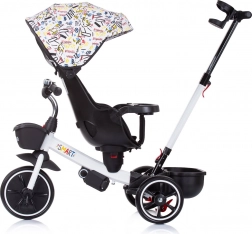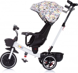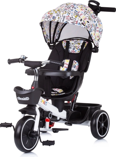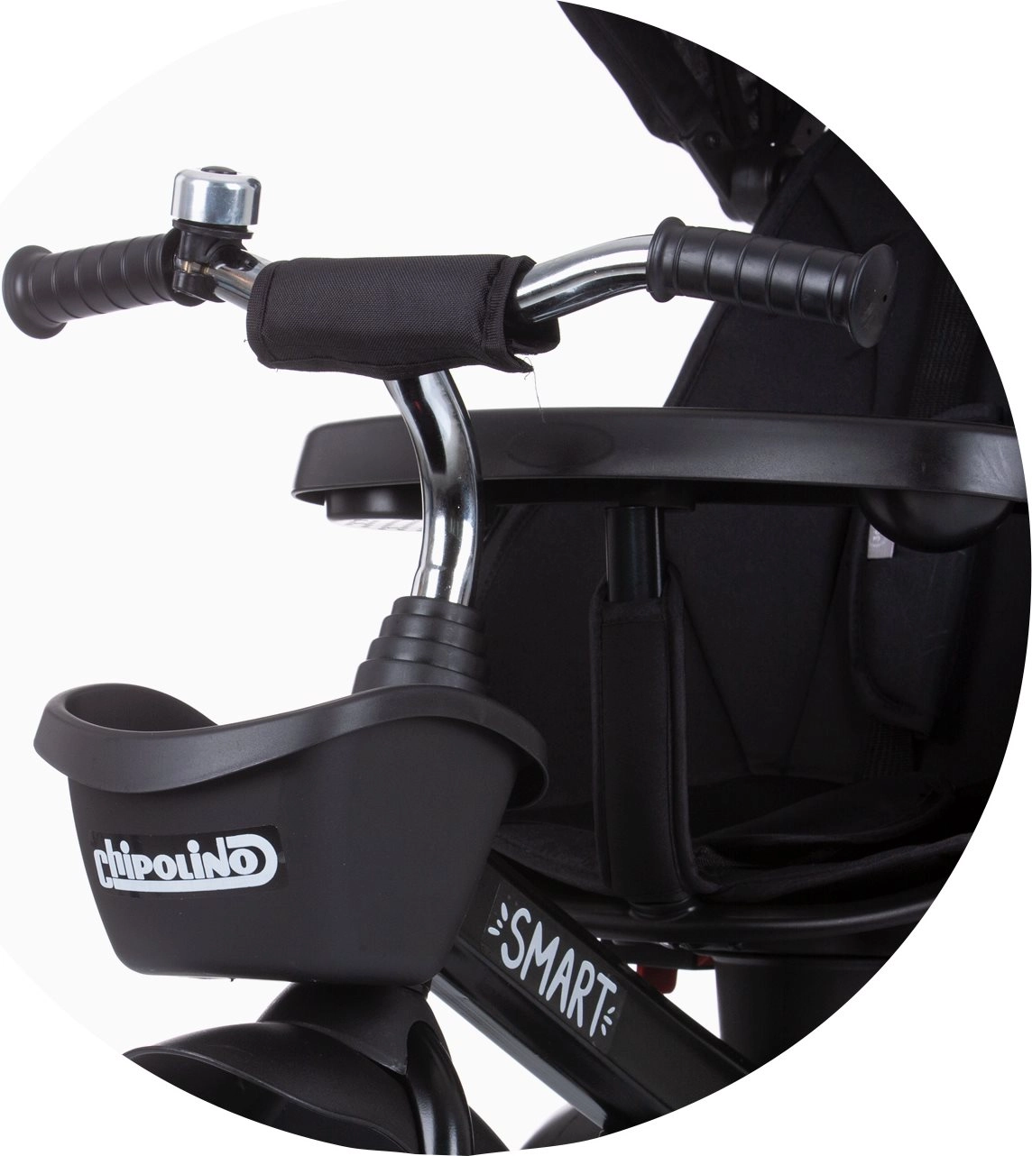 Multifunctioneel product Chipolino driewieler met kap Futuro met 2 verschillende gebruikswijzen – ouder duwt het kind of het kind bestuurt het speelgoed zelf met behulp van pedalen. De driewieler wordt een geweldige metgezel die meegroeit met het kind.