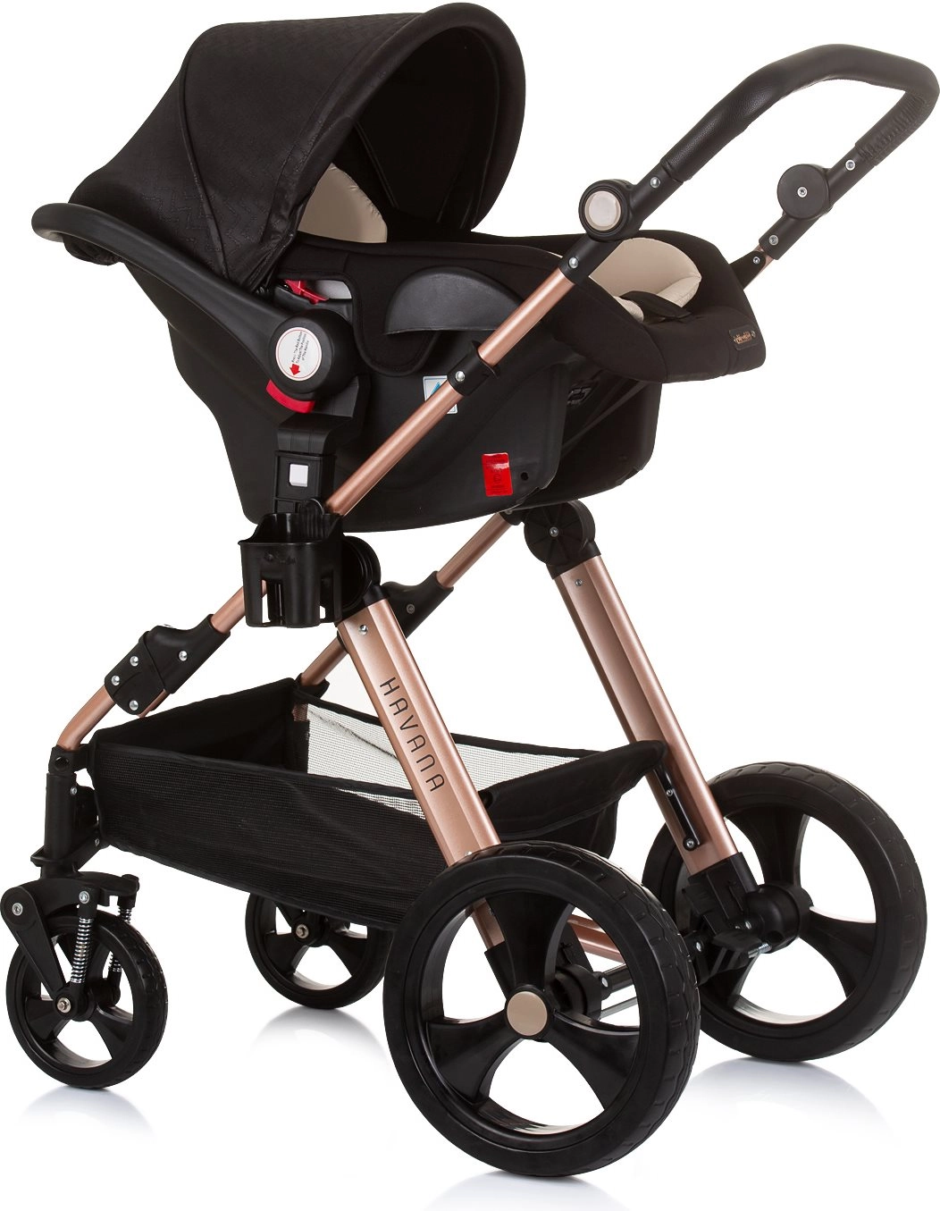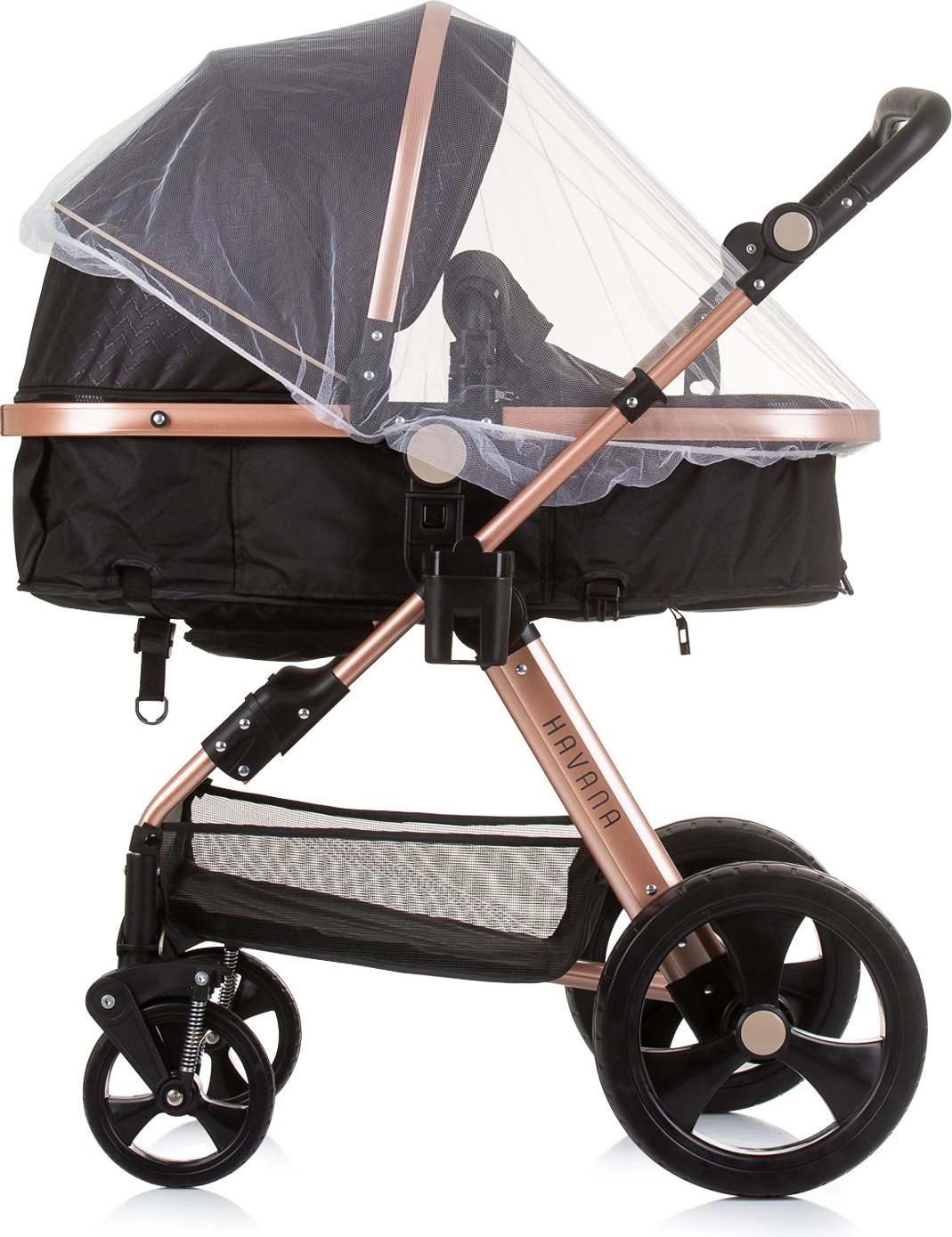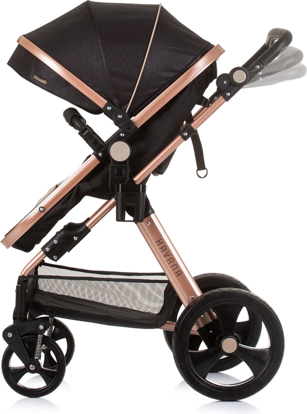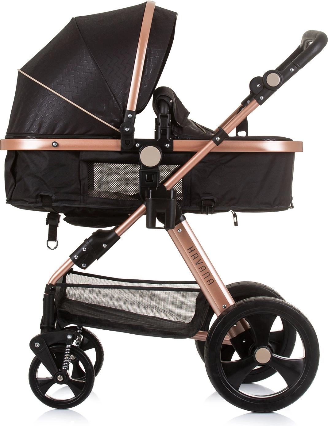 Lichte en elegante kinderwagen CHIPOLINO Havana 2-in-1 voor kinderen tot 22 kg. Omkeerbaar zitje, geveerde wielen, grote kap, rijke uitrusting en compact inklappen.