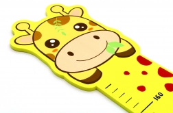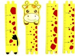 Schuimrubberen muurmeter met giraffemotief, ideaal voor kinderkamers. Bestaat uit 4 stukken als puzzel en meet tot 165 cm.