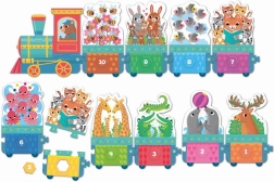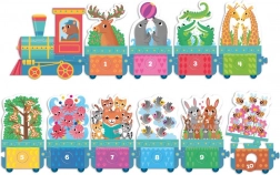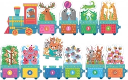 Tijd om te vertrekken! We gaan zo rijden! Het is tijd om de laatste wagons aan te koppelen. Hoeveel apen nemen we vandaag mee? Gaat de olifant ook met ons mee? Welke wagon vervoert de meeste dieren?