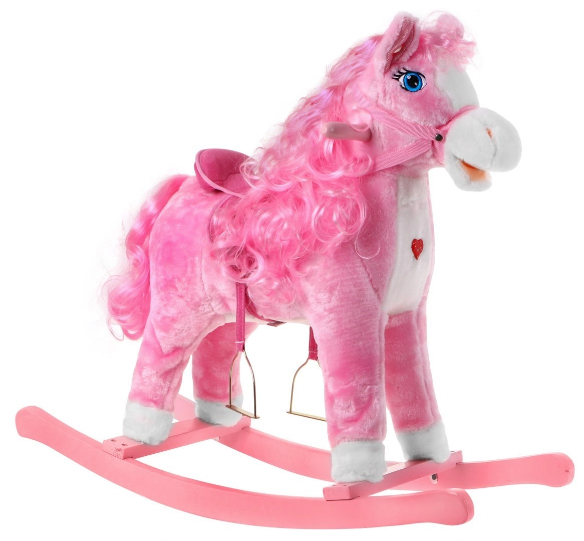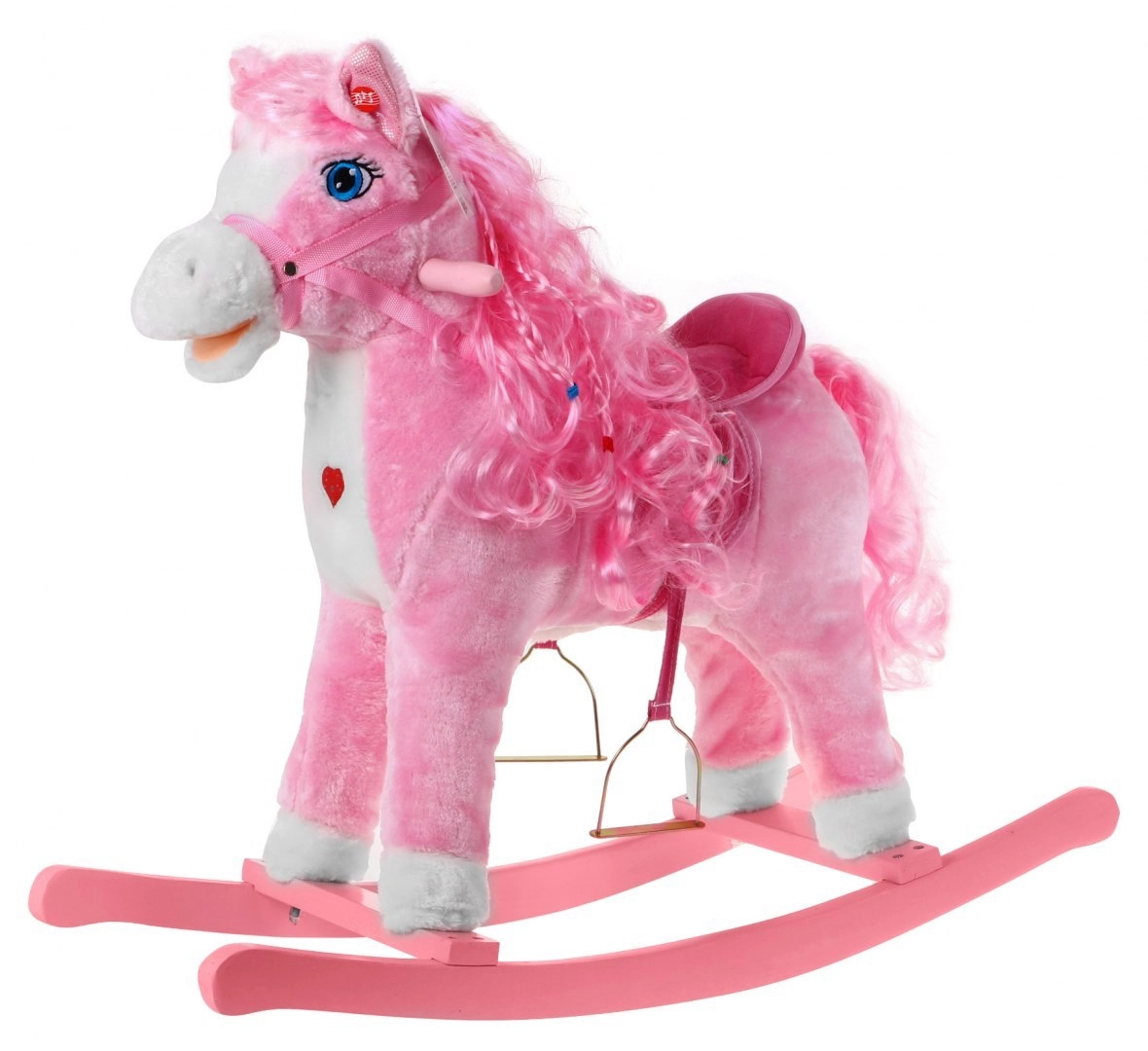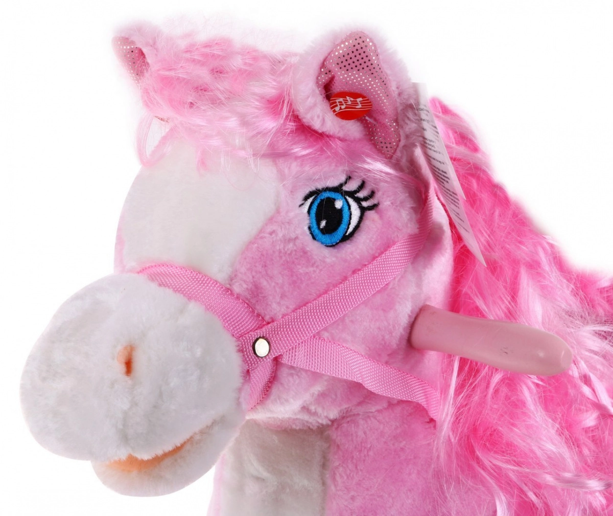 Roze pluchen hobbelpaard voor meisjes met interactieve functies