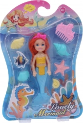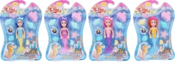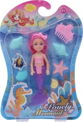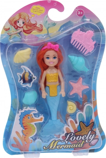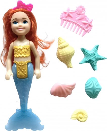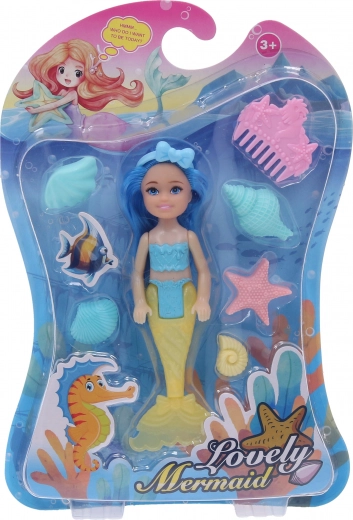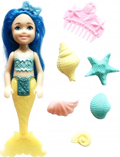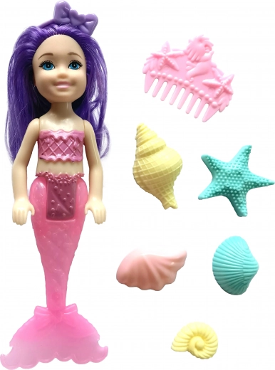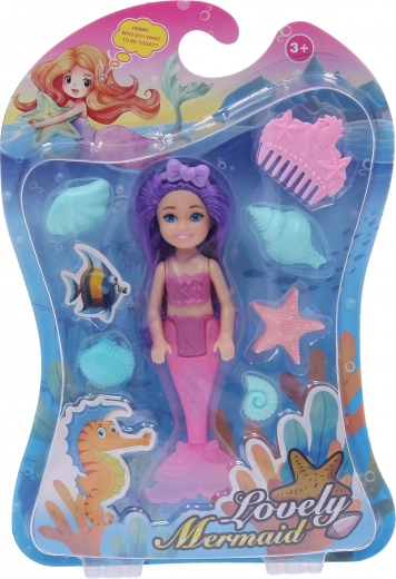 Schattige zeemeerminpop van 15 cm waar elk kind blij van wordt. In de verpakking vind je een zeemeermin met kam en schelp, verkrijgbaar in 4 kleurvarianten – paars, roze, oranje en blauw. Ideaal voor creatief spelen en het stimuleren van de verbeelding.