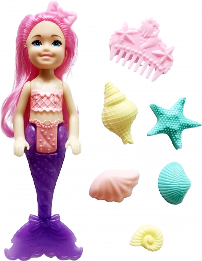 Ontdek de magische onderwaterwereld met deze lieve zeemeermin van 15 cm. Deze kleine pop past perfect in kinderhandjes en dankzij de accessoires kunnen kinderen hun eigen verhaaltjes bedenken en de haartjes verzorgen. De verschillende kleuren maken het mogelijk precies die variant te kiezen die het meest aanspreekt.