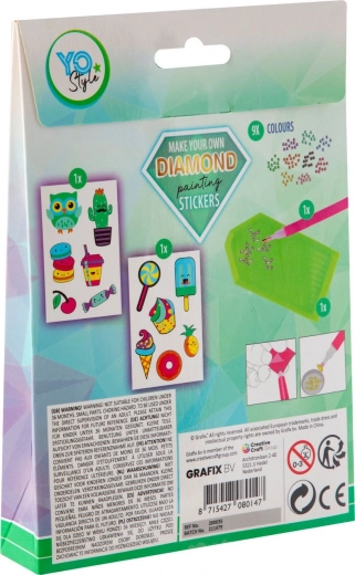 Verander eenvoudige stickers in sprankelende decoraties. De Grafix-set biedt 12 schattige motieven van snoep en zoetigheden die je eenvoudig versiert met gekleurde steentjes. De werkwijze is intuïtief en vereist geen artistieke vaardigheden – volg gewoon de gemarkeerde plekjes en geniet van een rustige, creatieve bezigheid.