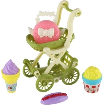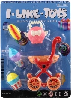 De set bevat een kinderwagen en extra accessoires die alledaagse voorwerpen nabootsen. Dit alles helpt kinderen belangrijke sociale vaardigheden op te doen en stimuleert creatief spel.