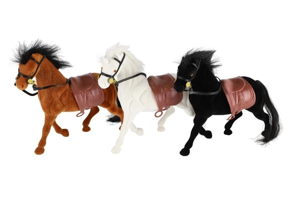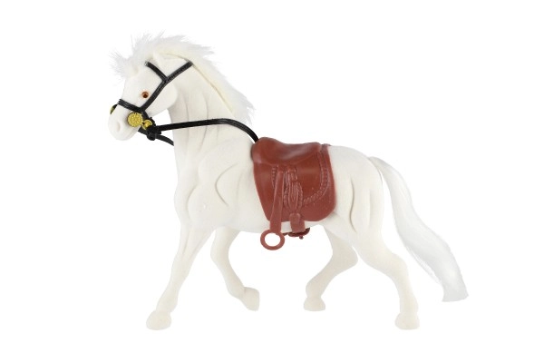 Gedetailleerd uitgewerkt paard met zadel en hoofdstel voor een realistische speelervaring.