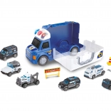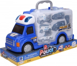Deze grote politieauto is 34 cm lang, 12,5 cm breed en 18,5 cm hoog. Hij is uitgerust met vrijlopende wielen, waardoor hij gemakkelijk over het oppervlak kan bewegen. Door op de rode knop in de cabine te drukken, activeer je licht- en geluidseffecten voor een realistische speelervaring.