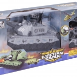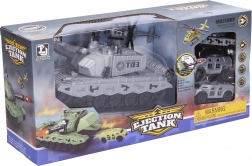 Betreed de wereld van actie met de kindertank met vliegwiel, die meer kan dan alleen rijden. Schuif eenvoudig een pijl in het kanon en schiet hem veilig af met de knop op de loop. In het voorste deel van de tank zit bovendien een slimme garage met lanceerfunctie voor autootjes – klap het deurtje open, plaats de auto en druk op de grote knop achterop.