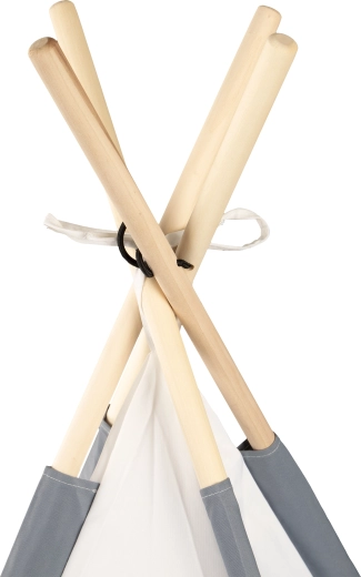 De tent staat in 10 minuten. De hoes is afwasbaar en het opgevouwen teepee berg je makkelijk op in de kast.