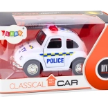 Deze klassieke politiewagen is uitgerust met wrijvingsaandrijving, waardoor hij na het op snelheid brengen vooruit rijdt en realistische scènes van politieachtervolgingen of patrouilles mogelijk maakt. De te openen portieren zorgen voor extra realisme tijdens het spelen.