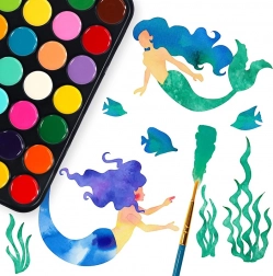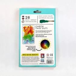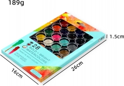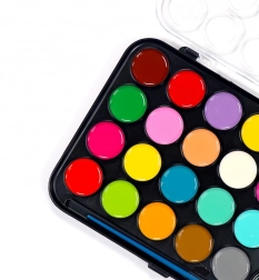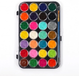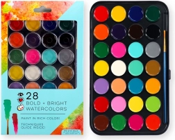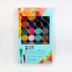 Ontdek de eindeloze mogelijkheden van kleur en maak je eigen originele schilderijen. Deze praktische, compacte set van 28 aquarelkleuren in prachtige, heldere tinten stelt iedereen in staat zijn of haar creativiteit te uiten. De set zit in een kunststof etui dat de verf beschermt tegen uitdrogen en het dagelijks gebruik vergemakkelijkt. Bij de set horen een penseel en een beknopte gids met aquareltechnieken. Daarmee leert iedereen kleuren combineren en nieuwe tinten creëren. Het is een ideaal cadeau voor kinderen, vrienden en iedereen die graag schildert.