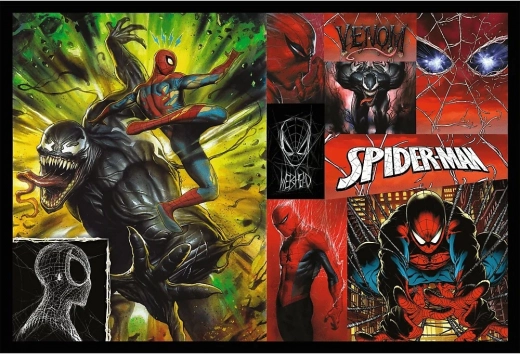 Geniet van dubbel zoveel plezier met een set die twee afbeeldingen van 200 stukjes bevat. Collages met helden uit het Marvel-universum – SPIDER-MAN en VENOM – bieden een aantrekkelijk contrast tussen dag- en nachtsfeer en ontwikkelen geduld, concentratie en fijne motoriek.