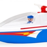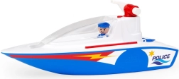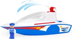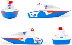 Deze robuuste LENA politieboot is gemaakt voor wateravonturen – hij drijft uitstekend in bad, in een kinderzwembad en aan zee. Dankzij de openende cabine met twee stoelen spelen kinderen moeiteloos spannende scènes en gaan ze op patrouille met de meegeleverde politiefiguur.