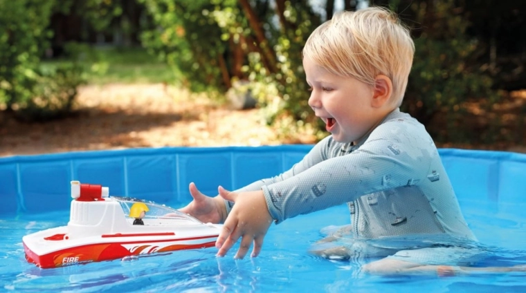 Voor nog meer actie kan een kleine catamaran aan de boot worden bevestigd en vervoerd (niet inbegrepen). Kinderen genieten van uren speelplezier en ontwikkelen spelenderwijs vaardigheden en fantasie.