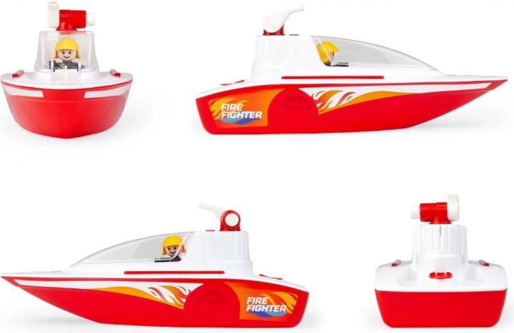 Geef kinderen spannende waterpret met de LENA brandweerboot! Deze robuuste boot voor in bad, het zwembad en aan zee heeft een werkend waterkanon met mechanische pomp, een openende cabine voor 2 figuurtjes en is uitgevoerd in heldere, goed zichtbare kleuren. Inclusief 1 figuurtje en geschenkverpakking. Het speelgoed ontwikkelt de fijne motoriek, oog-handcoördinatie en creativiteit.