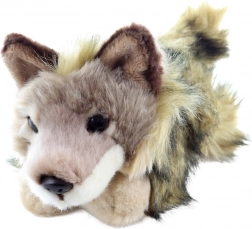 Met opvallend realistische details en kleuren biedt de pluchen coyote een authentieke ervaring om mee te spelen of om tentoon te stellen.