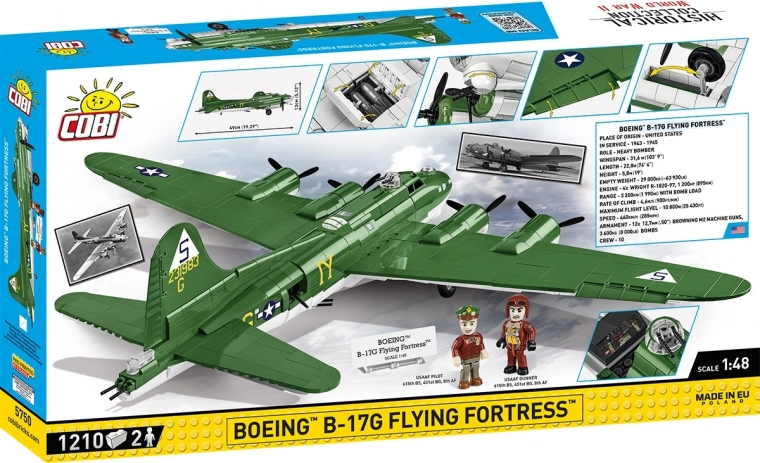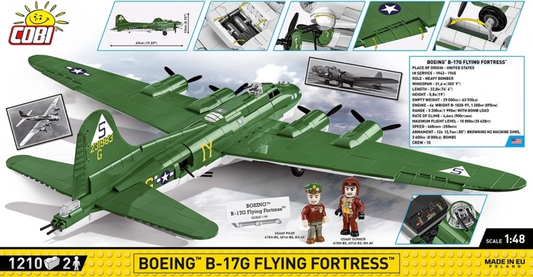 Bouw je eigen Boeing B-17G Vliegende Vesting met deze exclusieve bouwset van COBI! Het model is nauwkeurig op schaal 1:48 en bestaat uit meer dan 1232 hoogwaardige onderdelen. De constructie is voorzien van duurzame prints in plaats van stickers. De set biedt bewegende elementen zoals wielen, inklapbaar landingsgestel, propellers en te openen bomruimen. Met dit model geniet je van uren bouwplezier en het blijft een uitstekend pronkstuk in je collectie.