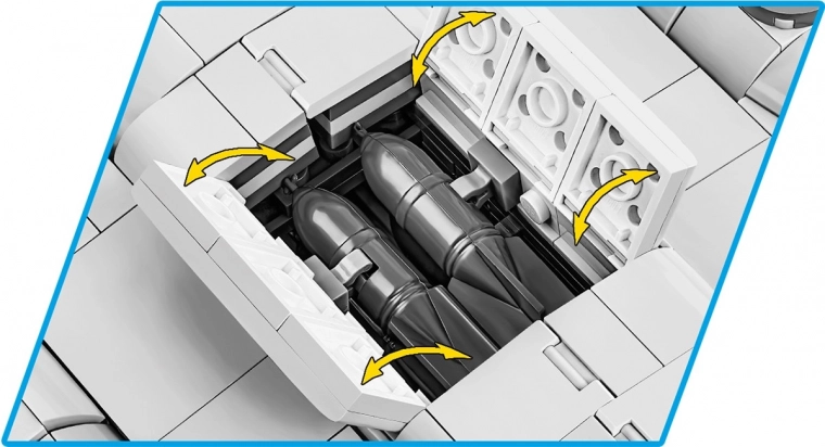 Voorzien van draaiende propellers, inklapbaar landingsgestel en te openen bomruimen, wat de interactiviteit verhoogt.