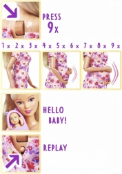 - Groeiende buik met drukknop – na 9 keer drukken wordt de baby geboren; het proces kan worden gereset en herhaald.