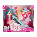 Betreed het feeënenrijk met Evi Love, die verandert in een magische fee met haar twee schattige eenhoorns. De speeltoren biedt een bewegende lift, een carrousel in de wolken voor beide eenhoorns, een glijbaan en een geheime bergplaats voor de stok. Evi kan aan de bovenste dwarsbalk worden vastgemaakt zodat ze met vlinders boven de toren kan “zweven”.