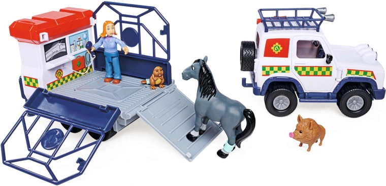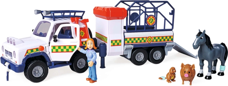 - GELICENTIEERDE BRANDWEERMAN SAM SPEELGOED: Dierenreddingsvoertuig met multifunctionele aanhanger en lier, bekend uit het nieuwste 14e seizoen van de animatieserie over dappere helden.