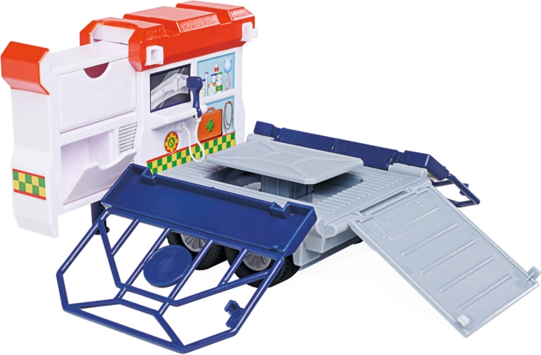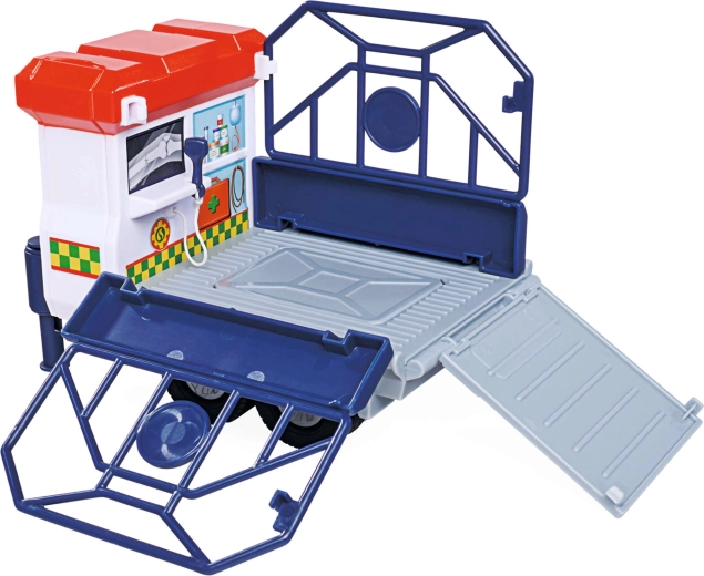 - 2-IN-1 AANHANGER: De aanhanger heeft uitschuifbare steunen die hem stabiliseren. Het rooster van de aanhanger opent aan 3 zijden en door op het midden te drukken klapt de behandeltafel uit, waarop patiënten onderzocht en behandeld kunnen worden – voor spannende speelmomenten zoals op het scherm.