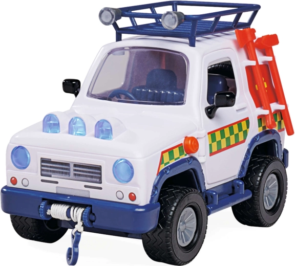 - RIJKE UITRUSTING: Achter het stuur van de jeep zit Lizzie, die vastzittende dieren helpt. Er is een afneembare aanhanger met een bewegend platform waarop 3 meegeleverde figuren bewegen: een everzwijn, een paard en een bever.