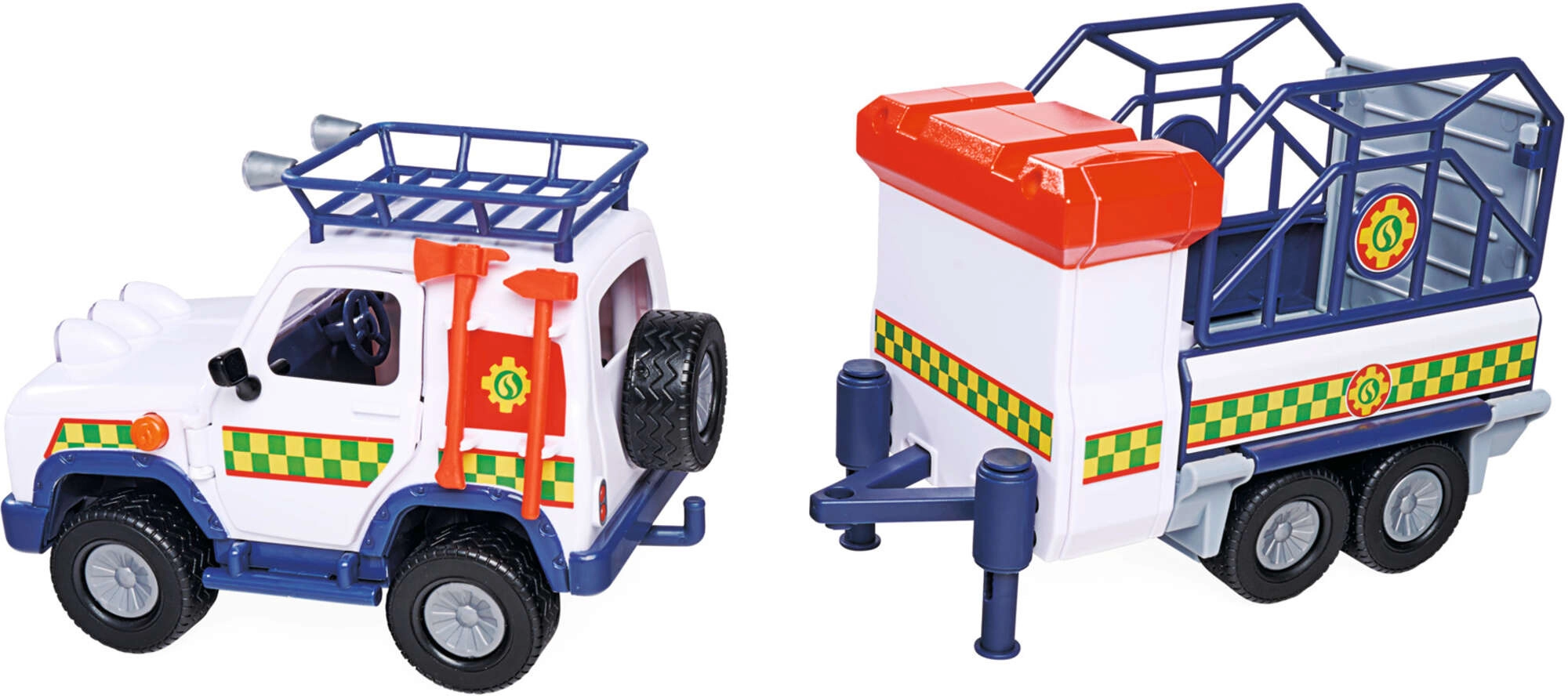 - ORIGINEEL SPEELGOED: Al het Brandweerman Sam-speelgoed van Simba is veilig en geschikt voor kinderen vanaf 3 jaar. De reddingsjeep werkt op 2 x 1,5V LR03/AAA-batterijen (inbegrepen). Lengte van het voertuig met aanhanger: