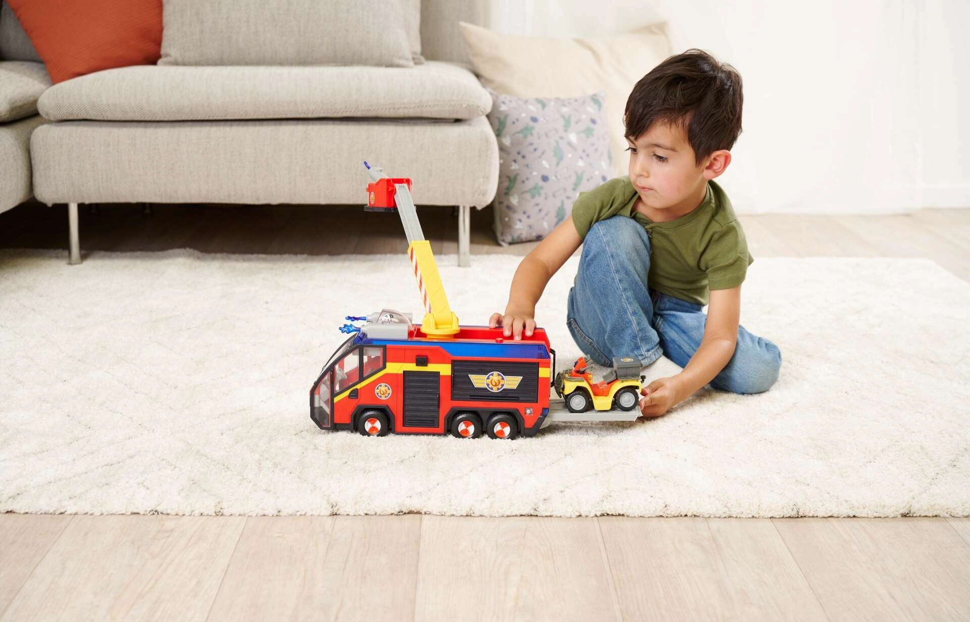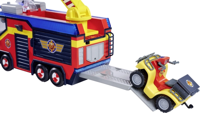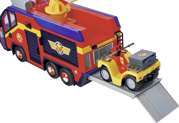 - UITGEBREIDE UITRUSTING: Er is een platform voor de quad en een te openen opbergruimte voor het brandweergereedschap dat aan Jupiter is bevestigd, zodat je de bekende reddingsmissies uit de serie over de dappere held Brandweerman Sam perfect kunt naspelen.