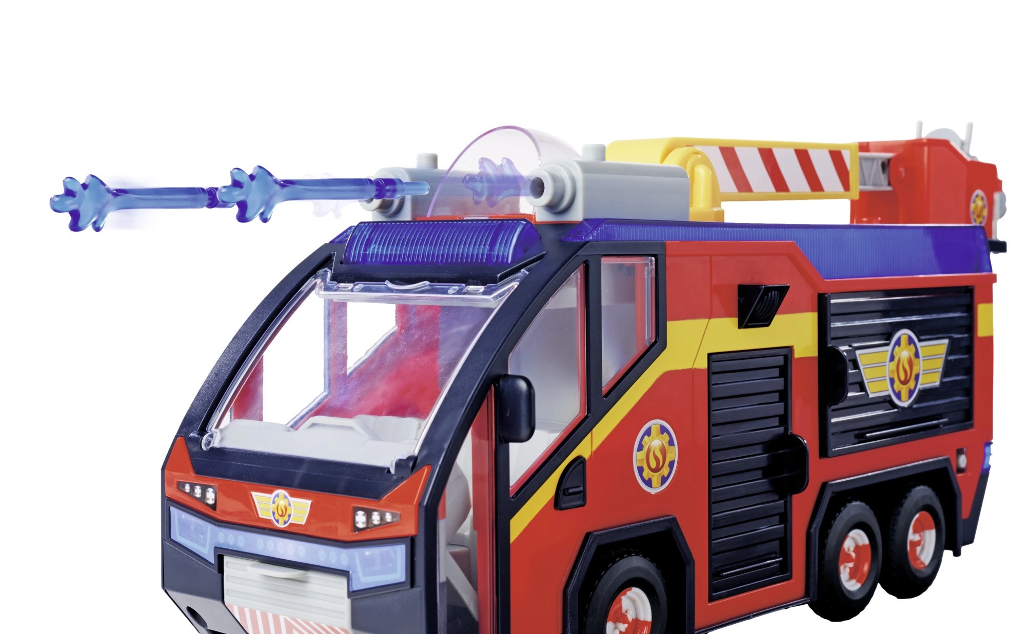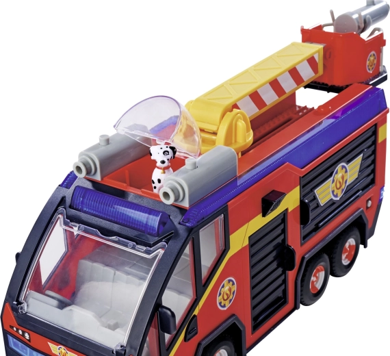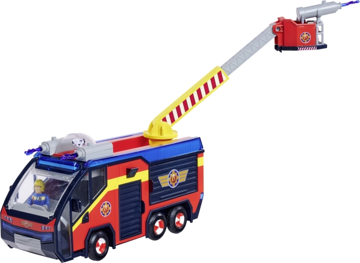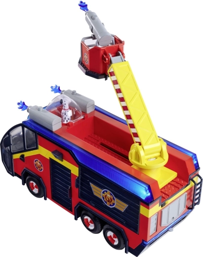 - GELICENSEERD SPEELGOED: Het beroemdste voertuig van Brandweerman Sam, Jupiter, in een nieuwe versie weerspiegelt trouw het voertuig uit seizoen 14 van de serie. Jupiter heeft een draaibare brandweerladder die kan worden uitgeschoven en gedraaid, met plastic waterpijlen.