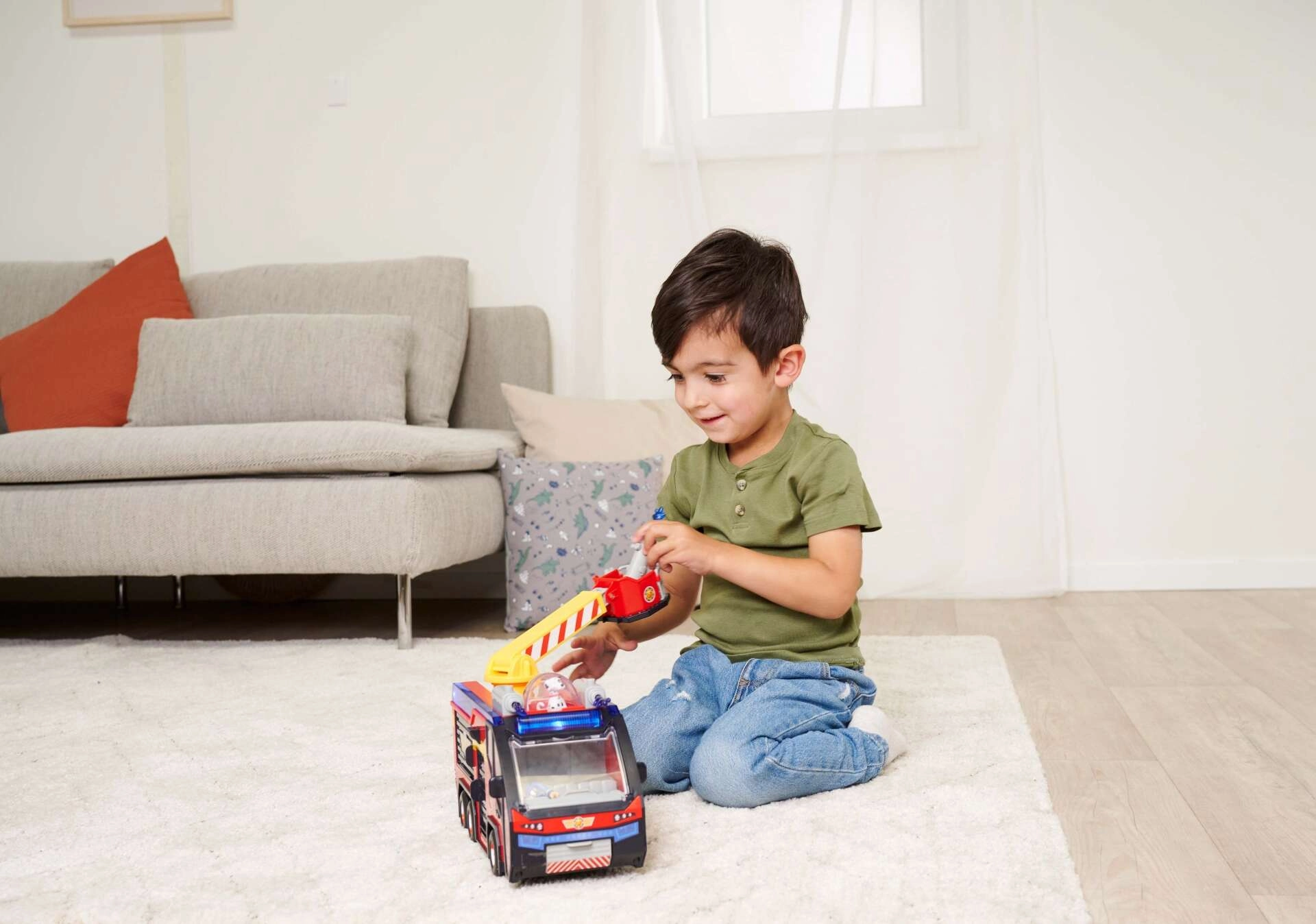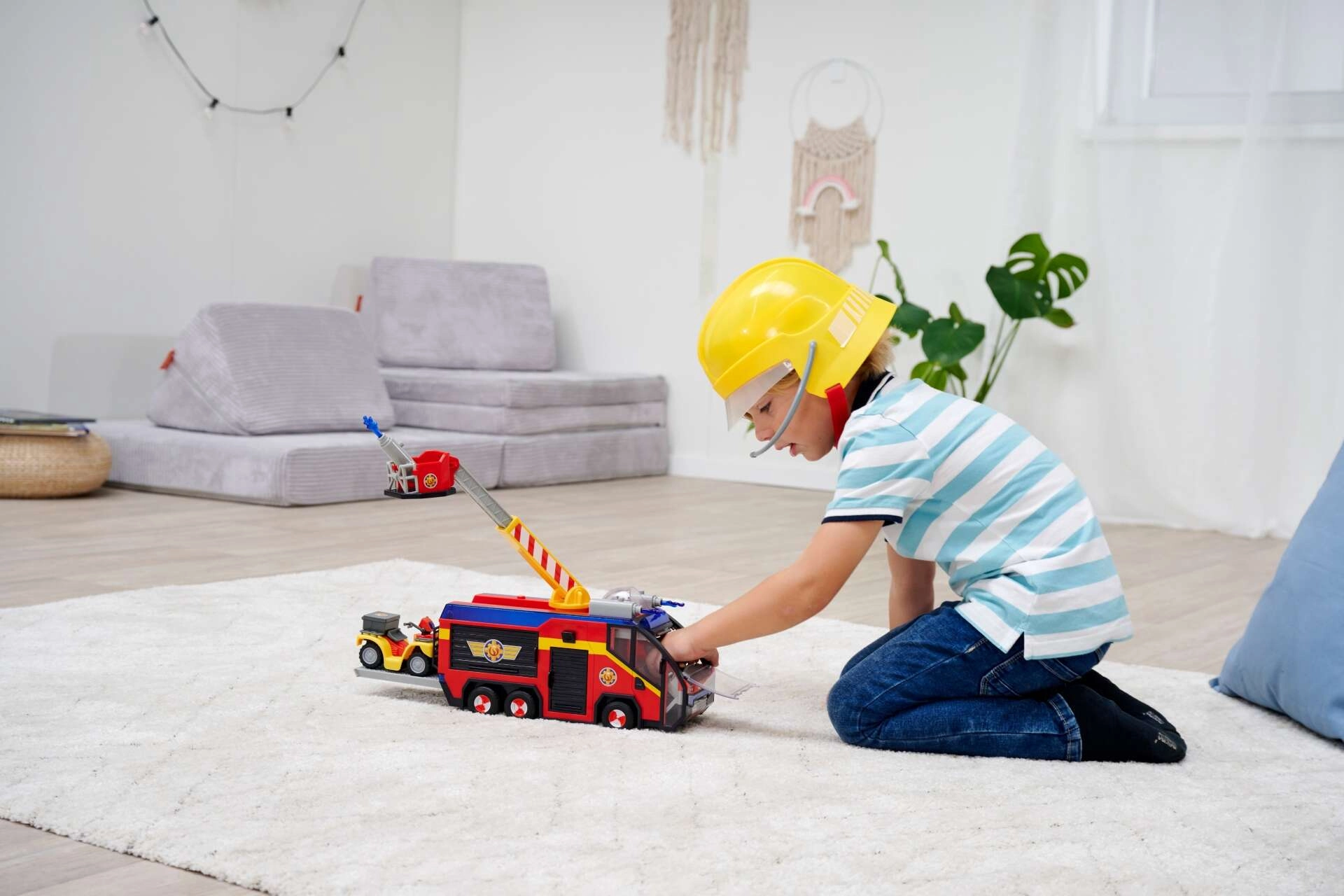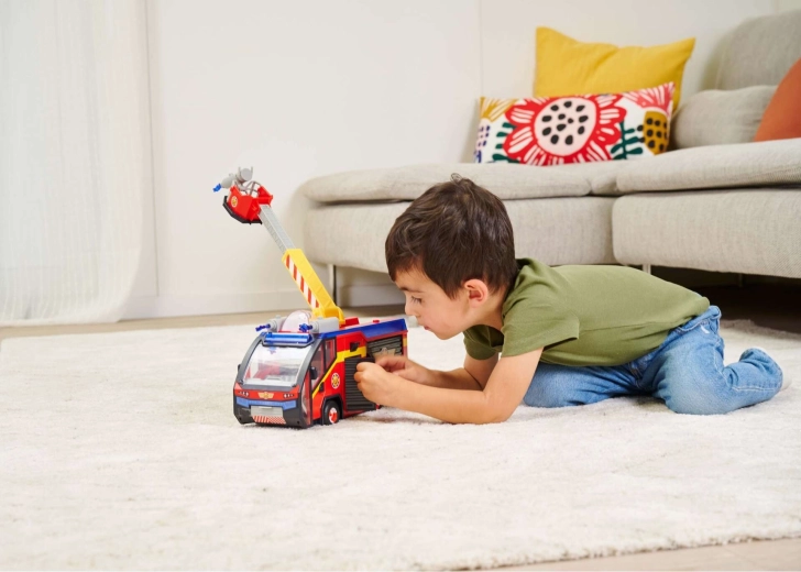 - Licht- en geluidseffecten: De brandweerwagen maakt realistische geluiden en heeft spectaculaire 360°-verlichting, wat een realistische achtergrond voor het spel biedt. Uitschuifbare opbergvakken voor gereedschap. Op het dak is er een te openen hondenkooi.