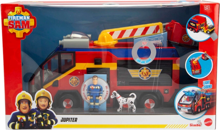 Het gelicenseerde Brandweerman Sam-voertuig is brandweerspeelgoed dat compatibel is en kan worden uitgebreid met extra figuren, stations of voertuigen – bijvoorbeeld de quad van Brandweerman Sam kan geparkeerd worden op het uitschuifbare achterplatform dat in deze Jupiter is ingebouwd.