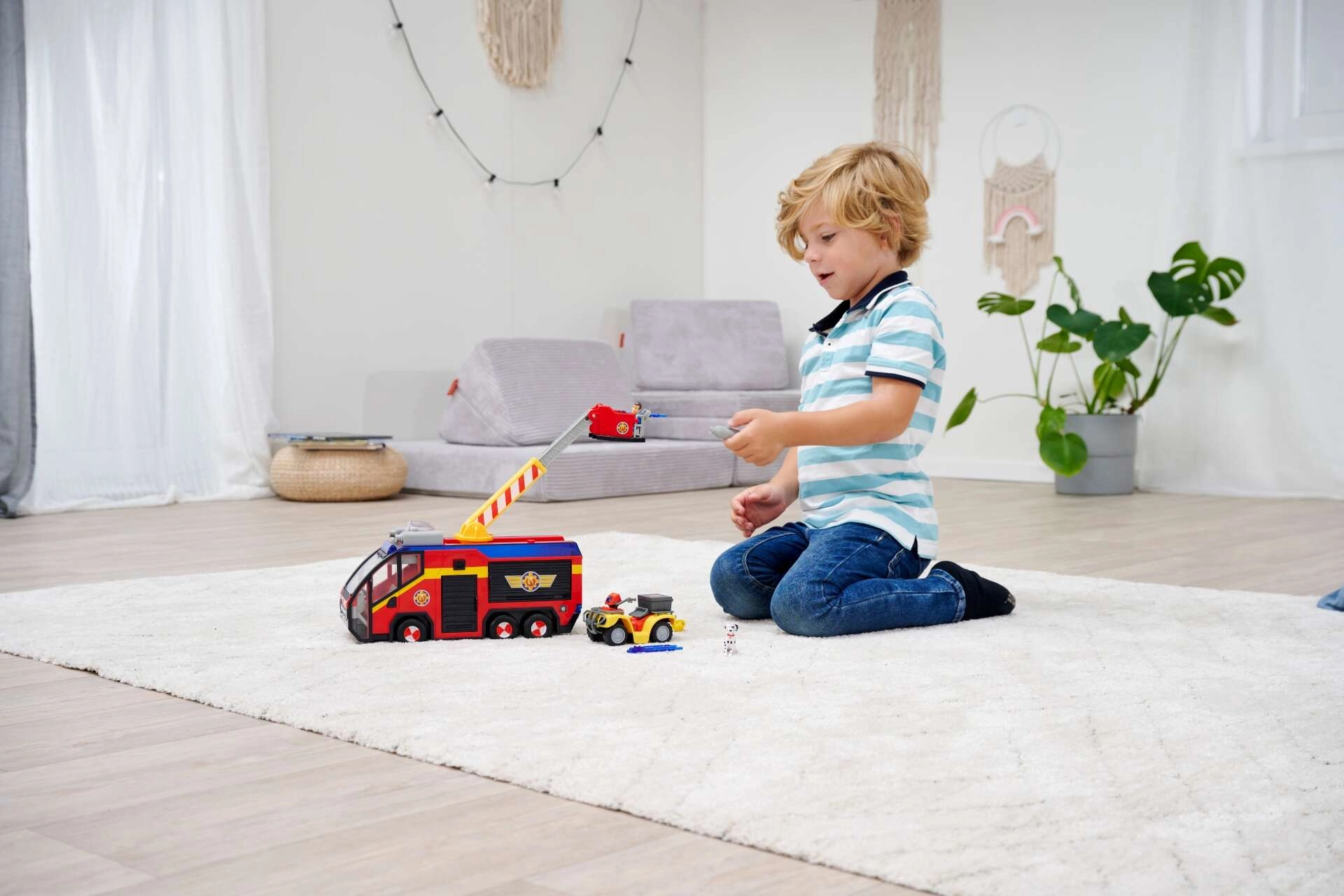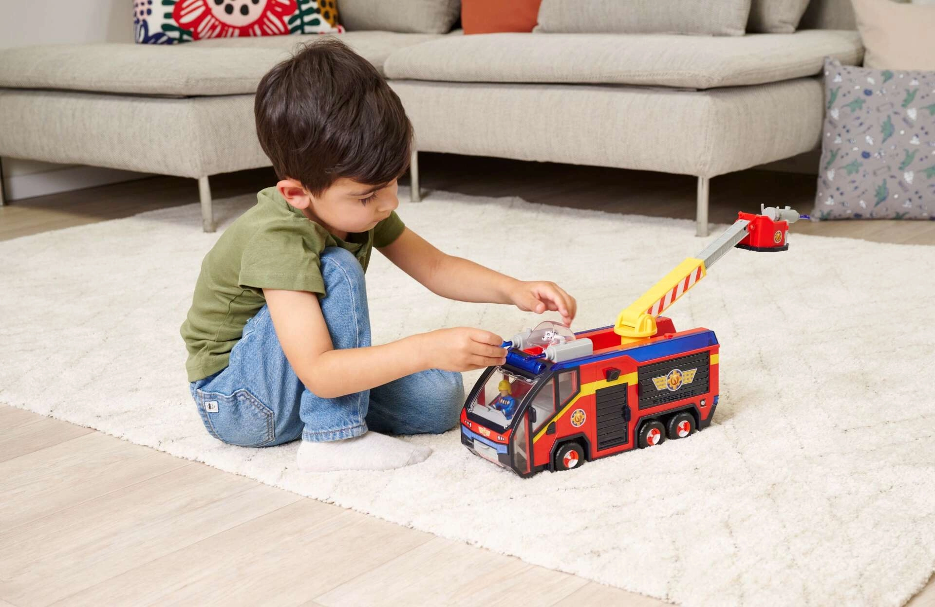 - ORIGINEEL SPEELGOED: Al het Brandweerman Sam-speelgoed van Simba is veilig en geschikt voor kinderen vanaf 3 jaar. Jupiter werkt op 2 x 1,5V LR03/AAA-batterijen (inbegrepen), lengte voertuig: