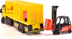 - Compleet set – vrachtwagen met aanhanger, heftruck en dozen voor het laden.