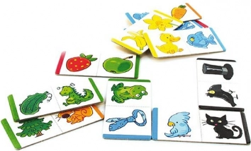In de doos vind je 27 kaartjes die gemakkelijk aan elkaar te verbinden zijn. De spelregels bevatten varianten voor één of meerdere kinderen, zodat 1–4 spelers kunnen meedoen, zowel voor een korte als langere speeltijd naar wens. Domino maakt deel uit van de serie MIJN EERSTE SPELLEN en wordt aangeraden door logopedisten als educatief en leuk hulpmiddel.