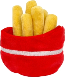 Deze schattige pluche set met snelle snacks brengt een flinke portie plezier in de kinderkeuken. In de praktische mand vind je een hamburger, frietjes, pizza, kippenpoot, spiegelei, muffin en ijsje. Elk onderdeel is zacht, ligt prettig in de hand en oogt dankzij de geborduurde details aantrekkelijk en realistisch.