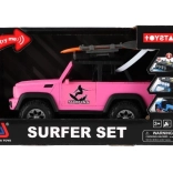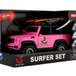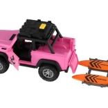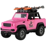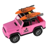 Geniet van uren speelplezier met deze roze terreinwagen met licht- en geluidseffecten. Inclusief twee surfplanken en peddels, ideaal voor kleine liefhebbers van strandavonturen.