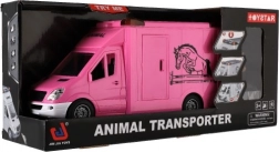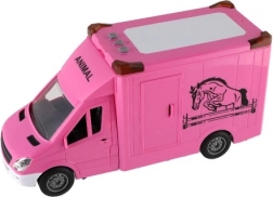 De transporter is uitgerust met realistische elementen, inclusief een paard en openende deuren, wat kinderen een echte transportervaring geeft.