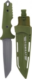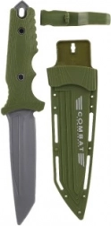 De gedetailleerde afwerking van het mes met groene handgreep en grijze lemmet zorgt voor een authentieke uitstraling voor soldatenspel.