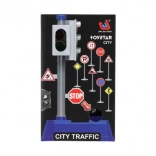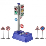 Naast het verkeerslicht bevat de set ook enkele verkeersborden die kinderen leren verkeerssituaties te herkennen en begrijpen.