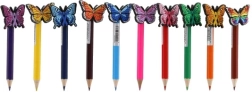 Elk potlood is versierd met een gekleurde vlinder, die de potloden een vrolijk en functioneel uiterlijk geeft.