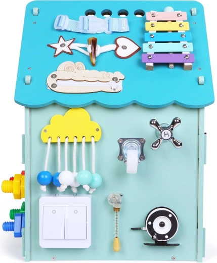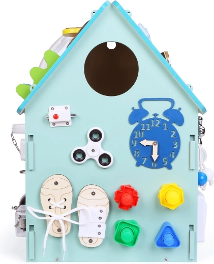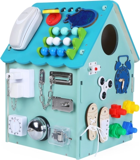 Het interactieve activity board huisje 2Kids Toys biedt kinderen vanaf 3 jaar uren ontdekken en leren. Het bevat slotjes, gespen, veters, een telefoon en bel, een telraam en klok om de fijne motoriek, oog-handcoördinatie, creativiteit en zintuiglijke stimulatie te bevorderen. Wordt voorgemonteerd in de doos geleverd.