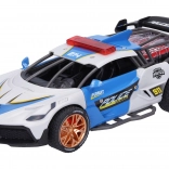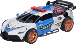 Stijlvolle politiewagen met vliegwiel die kinderen veel plezier biedt – na een duwtje rijdt hij vooruit en biedt licht- en geluidseffecten die geactiveerd worden door het indrukken van de motorkap. Compacte afmetingen 18×8,8×6 cm, 3× AG13-batterijen inbegrepen en 2 kleurvarianten (blauw, grijs).