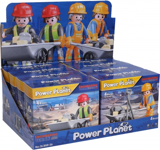 Figuurtje Bouwvakker met Kruiwagen, bouwset met realistische details voor kinderen. Bevat gereedschap en 4 varianten.