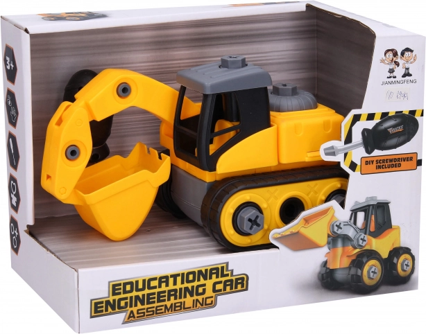 Schroefbare graafmachine voor kleine bouwers, ideaal voor het ontwikkelen van motorische vaardigheden. Geniet van het plezier bij het in elkaar zetten en weer uit elkaar halen!