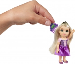 De 15 cm hoge pop past in kinderhand en rugzak. Glinsterende jurk, tiara en de iconische kleuren van elke prinses zorgen voor een instant “wow”-effect.