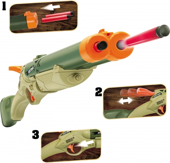 Maak kennis met de Huntsman BOOMSTICK hagelgeweer, ontworpen voor kinderen die op zoek zijn naar actie en avontuur. Dit wapen is een verkort dubbelloops hagelgeweer dat het spel realistisch en leuk maakt:
