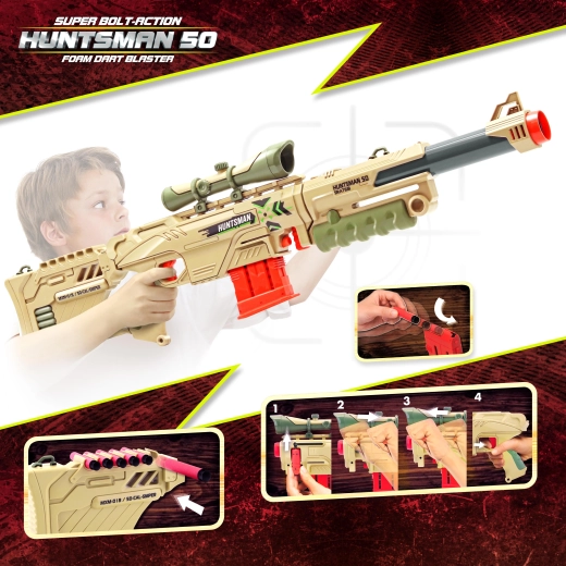 De Huntsman Sniper Blaster is een veelzijdig speelgoed voor jonge schutters en enthousiaste verzamelaars. Dankzij de modulaire constructie kun je in een handomdraai schakelen van een lang sluipschuttersgeweer naar een compacte handblaster. Eenvoudige bediening, veilige foam pijlen en een aantrekkelijk design garanderen uren veilige en creatieve speelpret.