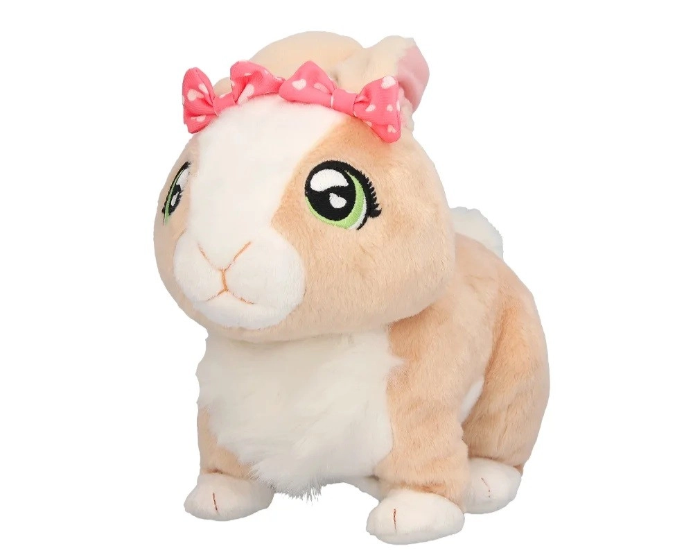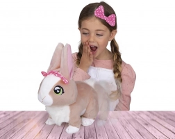 Konijntje Tusia valt meteen op door zijn superzachte beige vacht, grote groene ogen en verfijnde details, inclusief het roze strikje. Dankzij de interactieve functies biedt het kinderen veel plezier en rustgevende knuffelmomenten. Bij aaien springt het vrolijk, beweegt het zijn oortjes en laat het lieve geluidjes horen die de verbeelding en emotionele ontwikkeling van het kind stimuleren.
